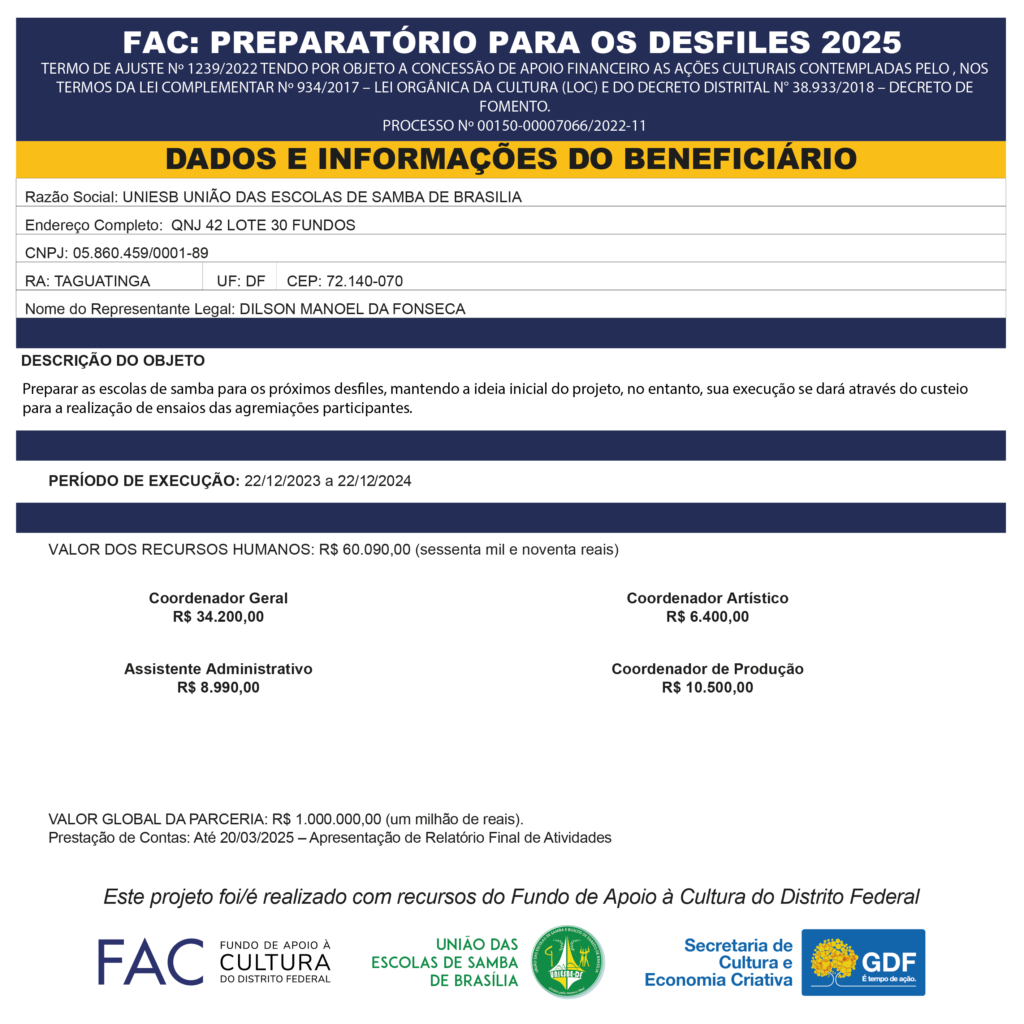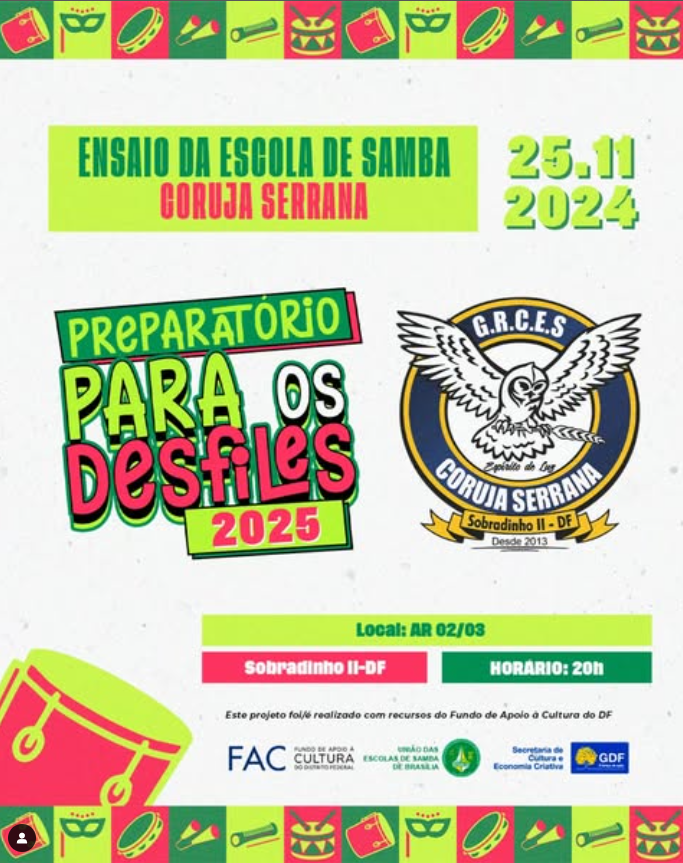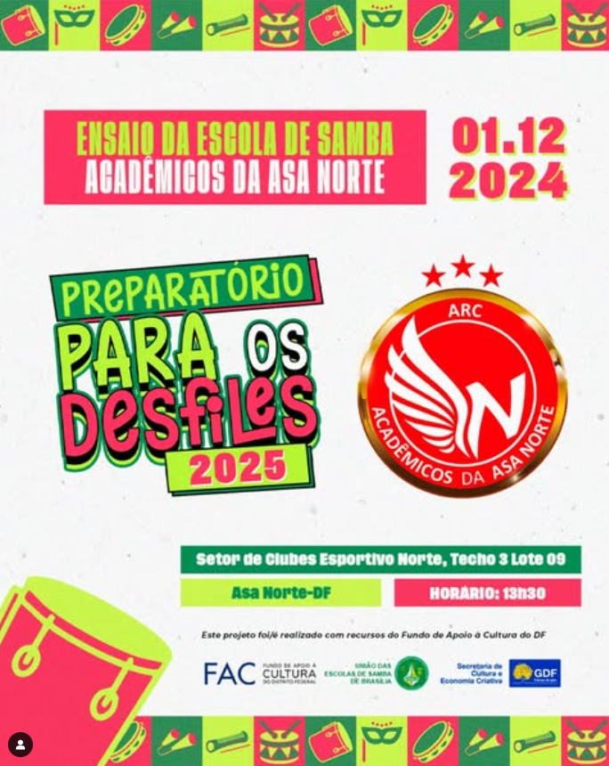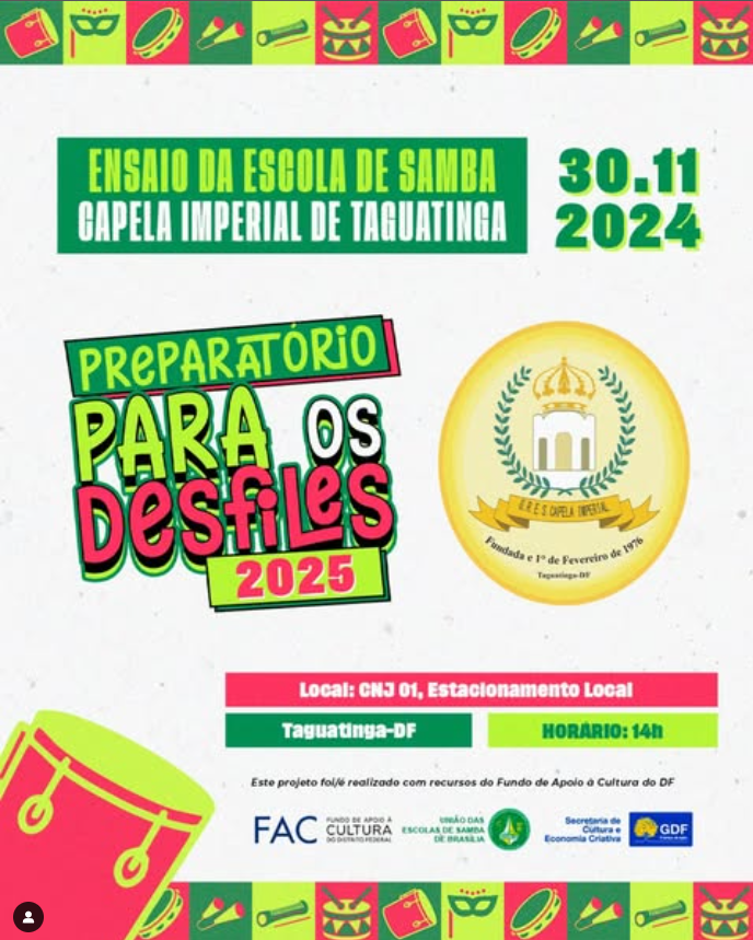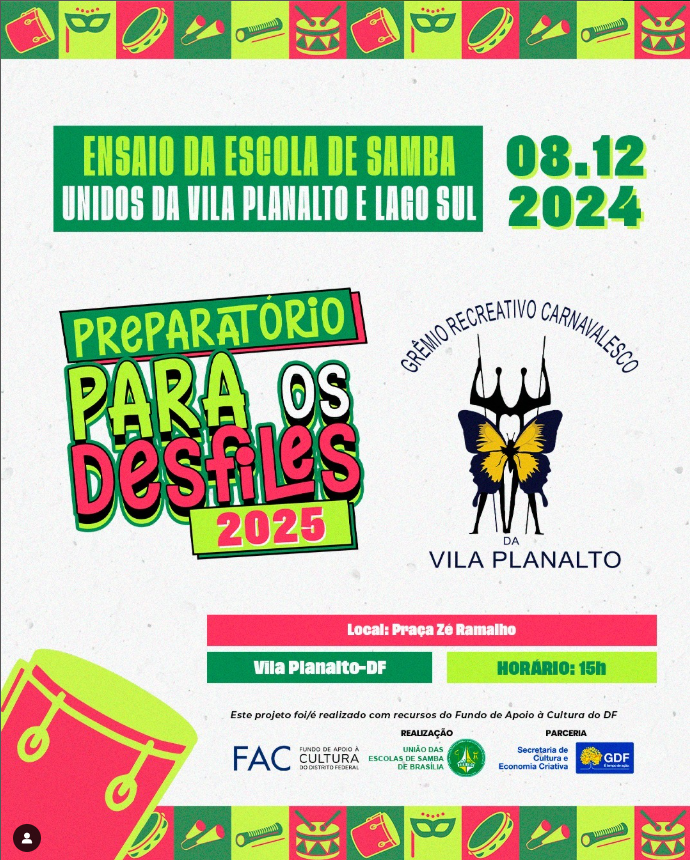 Confira as Escolas de Samba, que fazem parte do Grupo Especial das Escolas de Samba de Brasília
