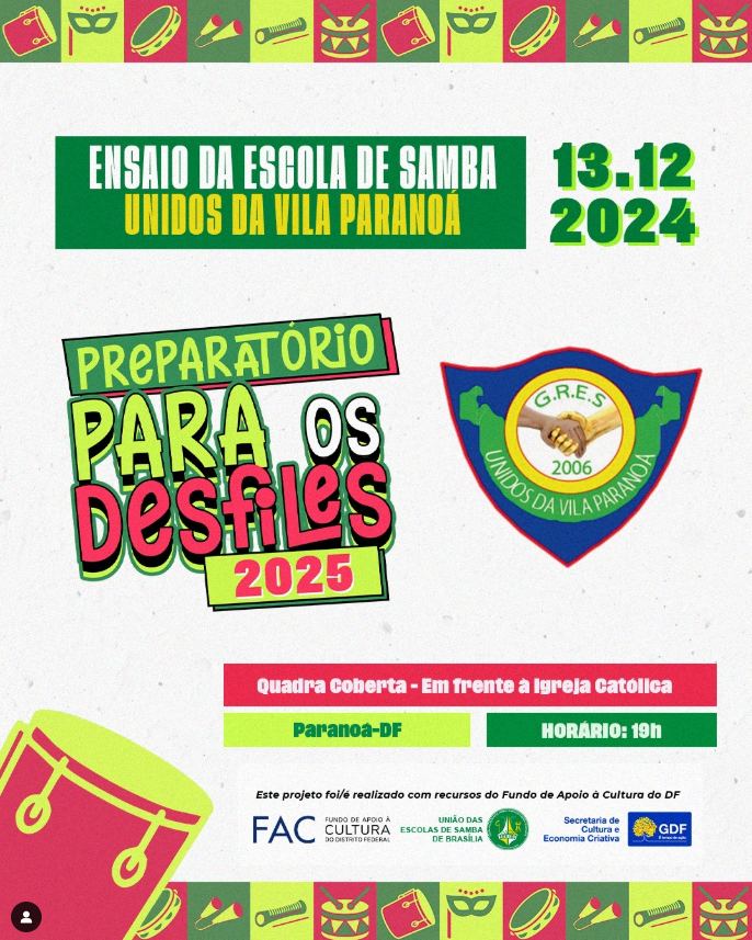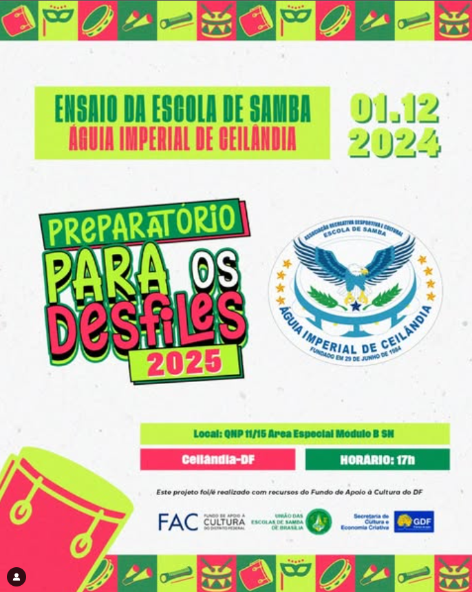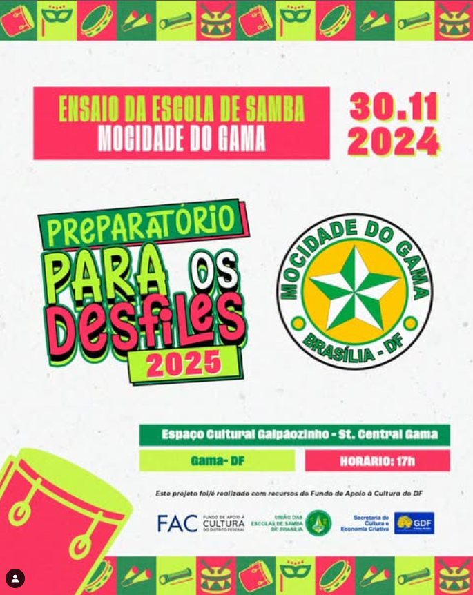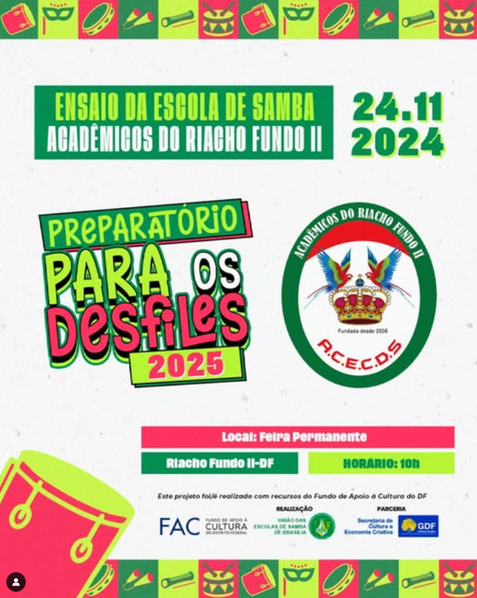 "Preparar as escolas é um trabalho contínuo. Devemos estar sempre preparados e em preparação constante visando o melhor para o samba e para a cultura de Brasília."